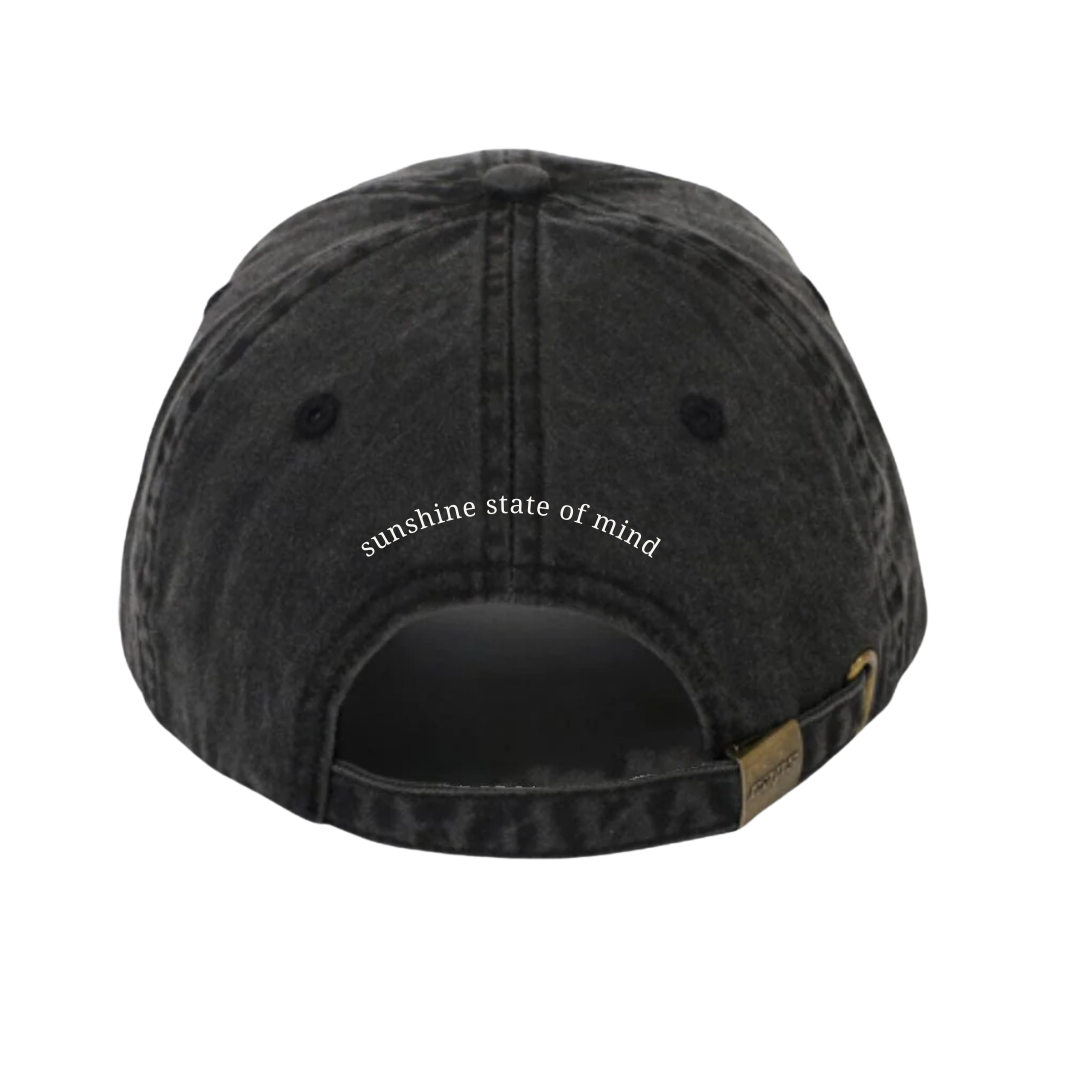 and white 'sunshine state of mind' embroidery on the back